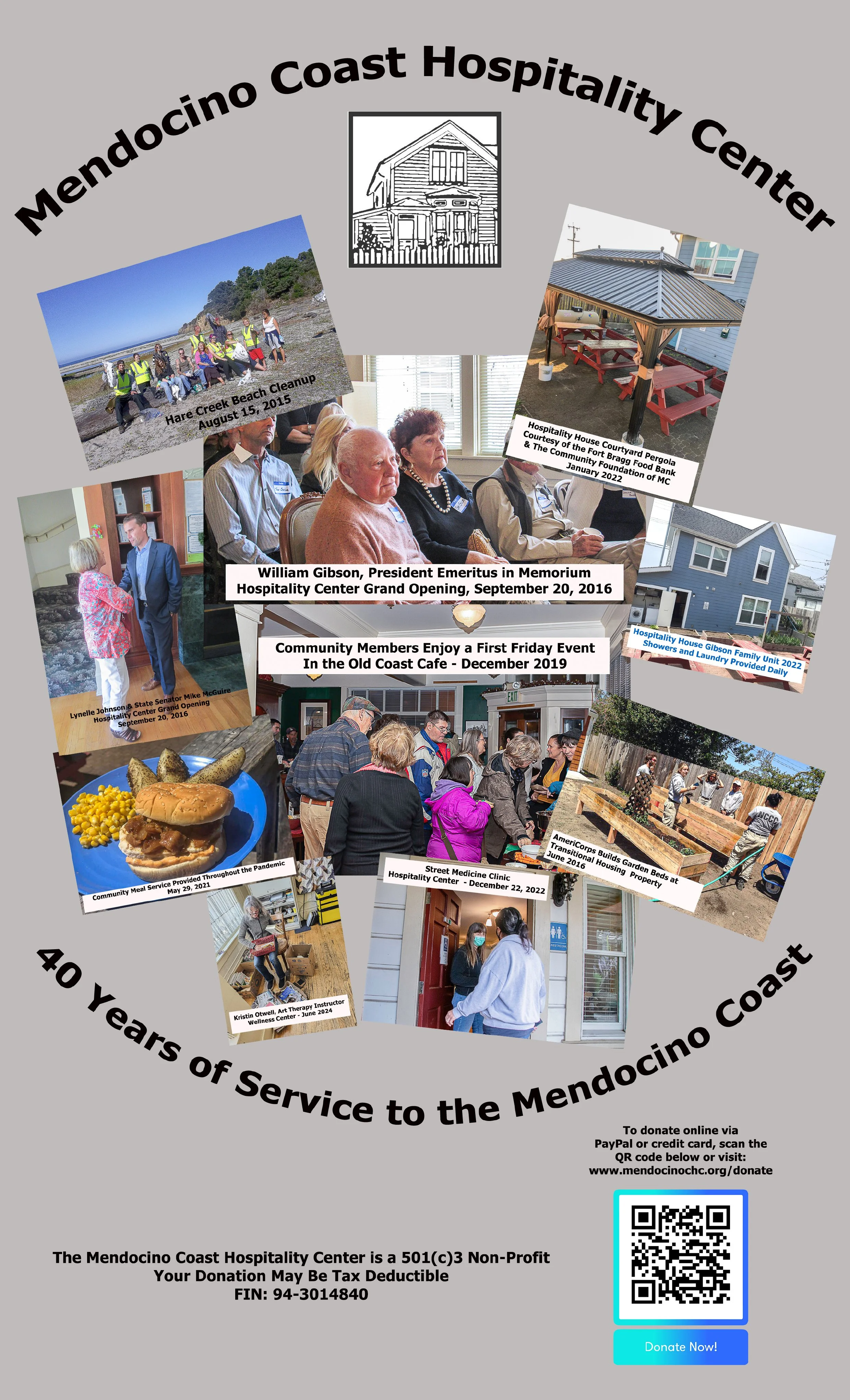 Your generous donations go to fund the operation of The Mendocino Coast Hospitality Center and